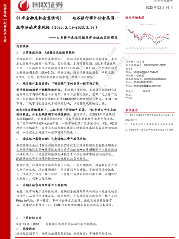 【国联证券】【20230319】大类资产表现回顾及资金流向监测周报:硅谷银行事件折射美国一级市场的泡沫风险-08年金融危机会重演吗?-24页 行业研究