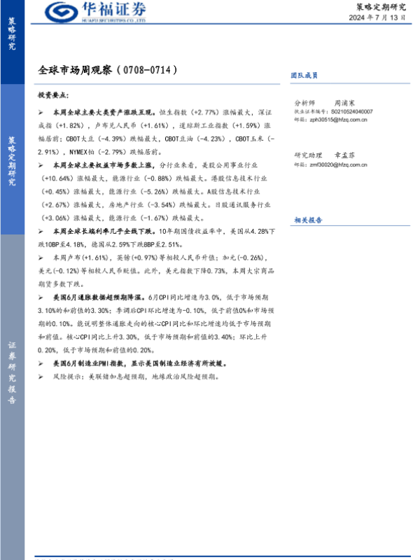 【华福证券】【20240713】全球市场周观察-240713-12页 行业研究