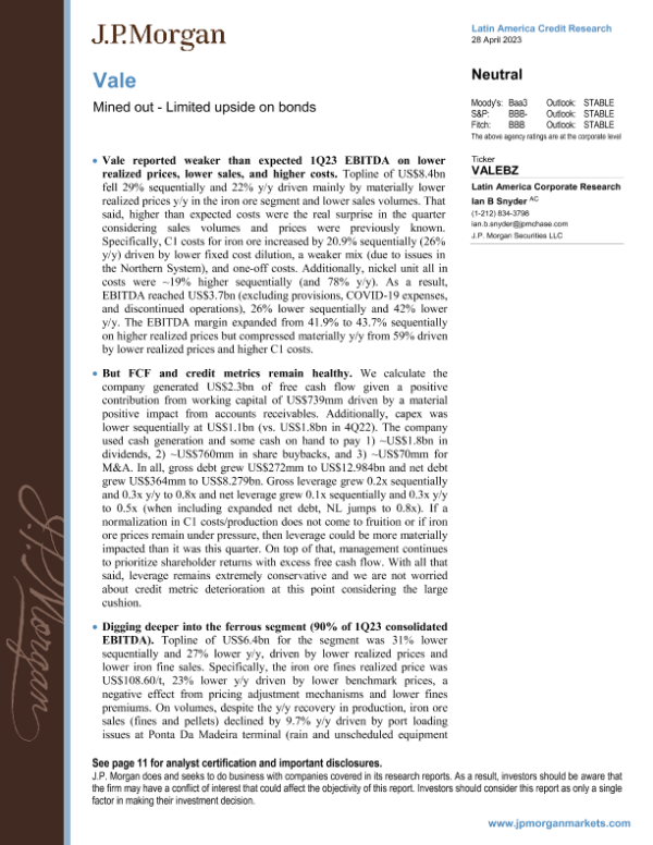 【J.P. Morgan】【20230428】JPMorgan Econ FI-Vale Mined out - Limited upside on bonds-16页 行业研究