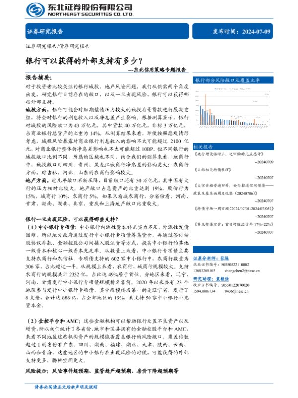 【东北证券】【20240709】信用策略专题报告:银行可以获得的外部支持有多少?-43页 行业研究