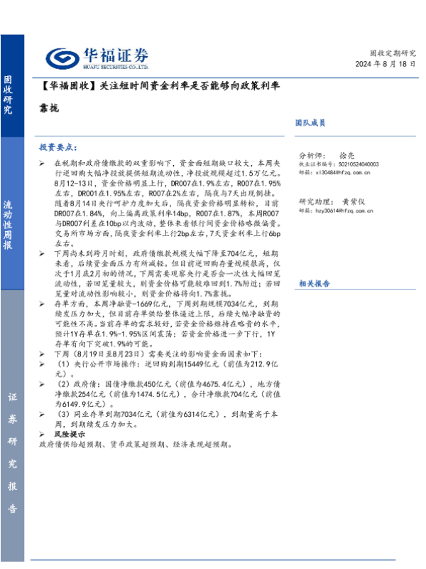 【华福证券】【20240818】关注短时间资金利率是否能够向政策利率靠拢-15页 行业研究
