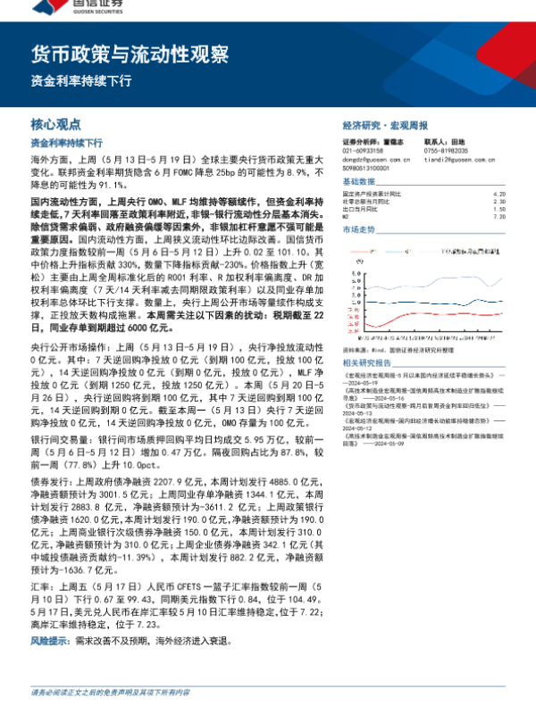 【国信证券】【20240520】货币政策与流动性观察:资金利率持续下行-14页 行业研究