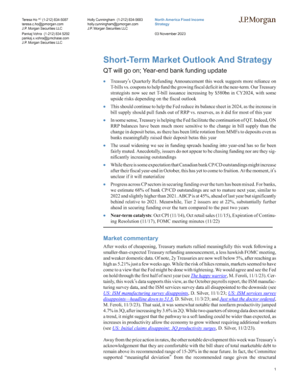 【J.P. Morgan】【20231103】FI-Short-Term Market Outlook And Strategy QT will go on; Year-end bank funding update-19页 行业研究
