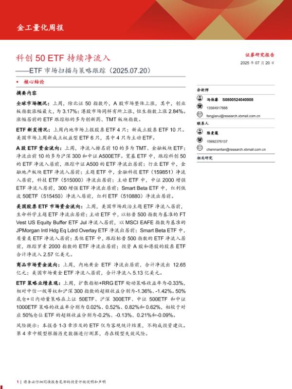 【西部证券】【20250720】ETF市场扫描与策略跟踪:科创50ETF持续净流入-21页 证券期货研究报告