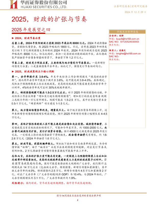 【华西证券】【20241229】2025年度展望之四:2025,财政的扩张与节奏-20页 宏观策略
