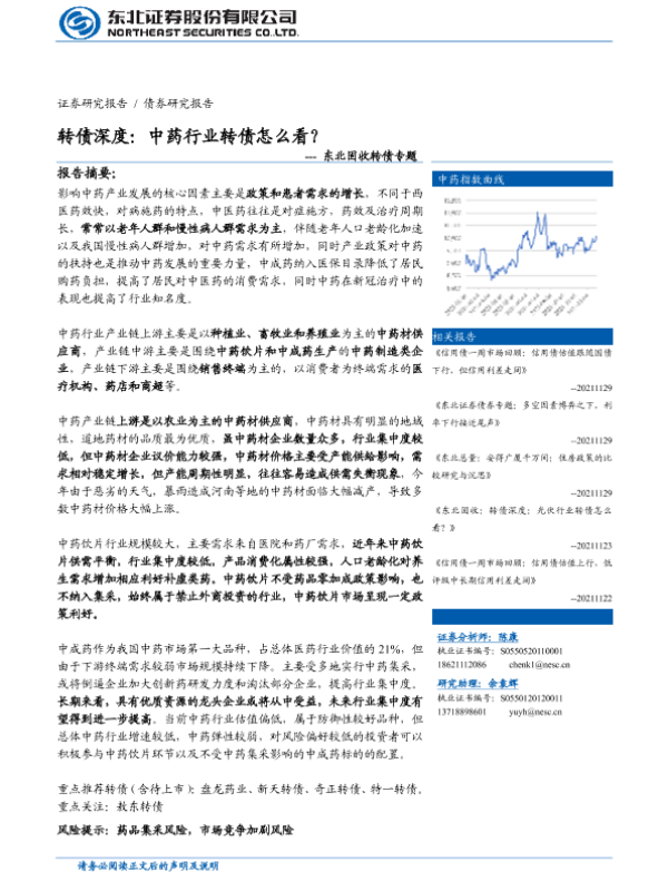【东北证券】【20211129】东北固收转债专题:转债深度,中药行业转债怎么看?-31页 行业研究
