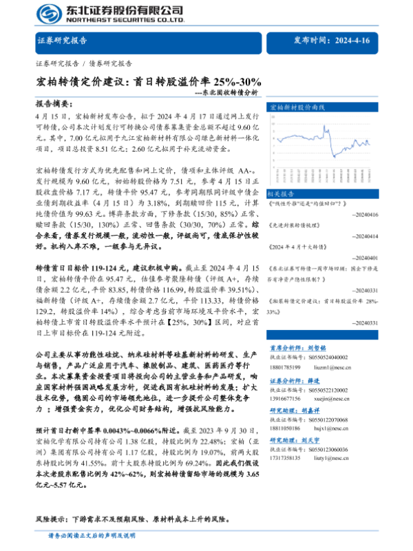 【东北证券】【20240416】固收转债分析-宏柏转债定价建议:首日转股溢价率25%-30%-12页 行业研究