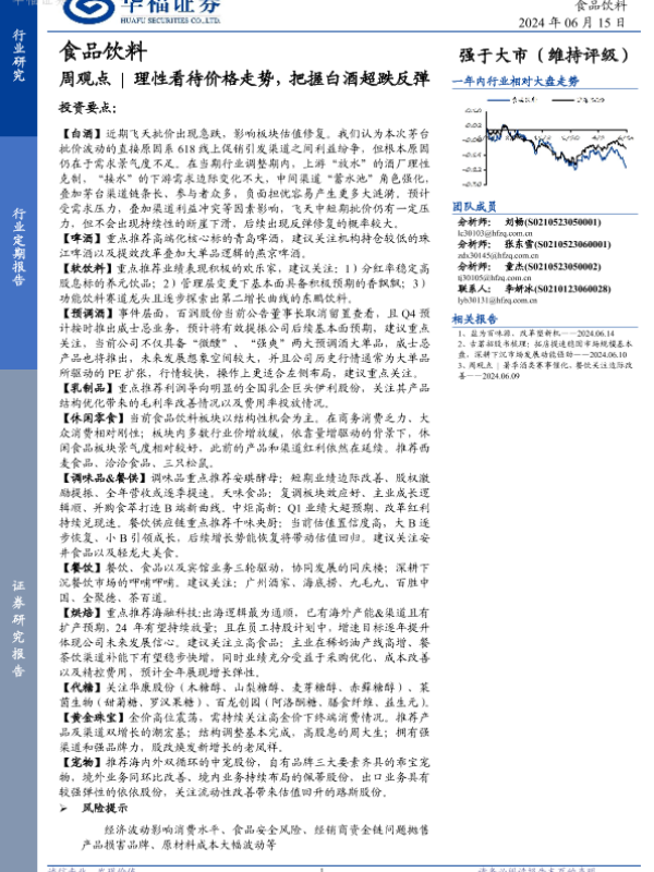 【华福证券】【20240615】食品饮料行业周观点:理性看待价格走势,把握白酒超跌反弹-14页 行业研究
