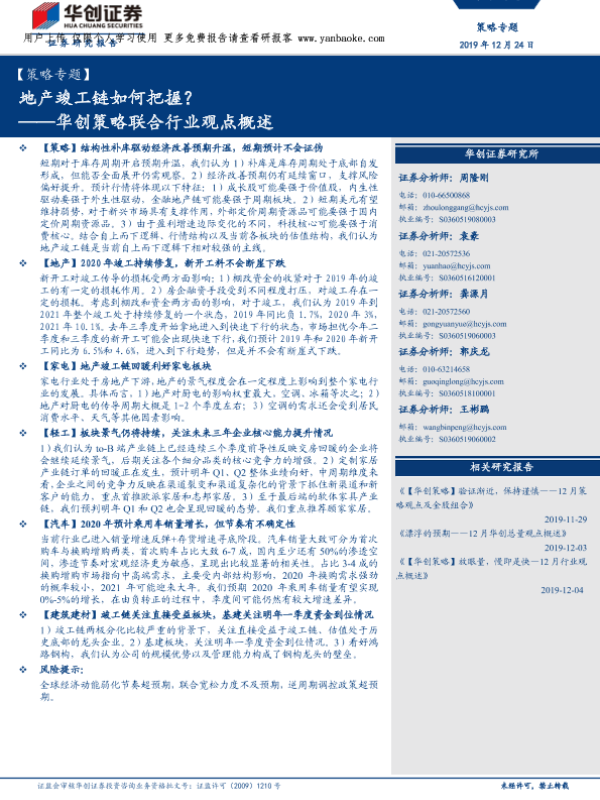 【华创证券】【20191224】地产竣工链如何把握?-10页 证券期货研究报告