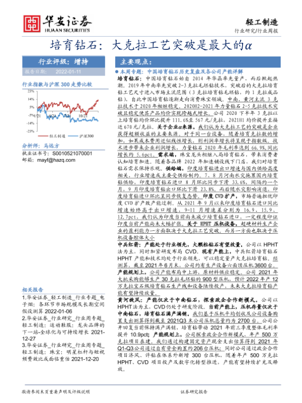 【华安证券】【20220111】20220111-华安证券-轻工制造行业周报:培育钻石:大克拉工艺突破是最大的α-30页 行业研究