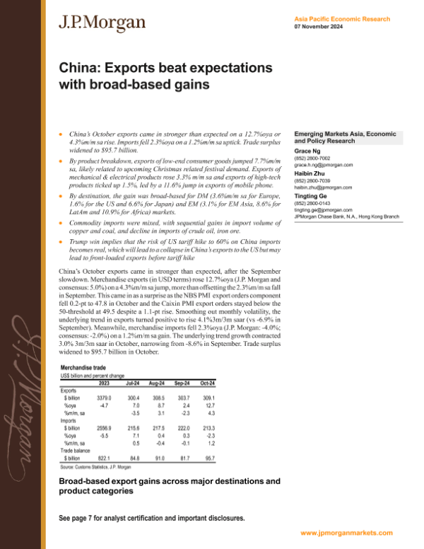 【J.P. Morgan】【20241107】an Econ FI-China Exports beat expectations with broad-based gains-11页 行业研究