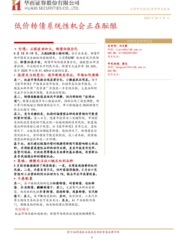 【华西证券】【20240421】低价转债系统性机会正在酝酿-18页 行业研究