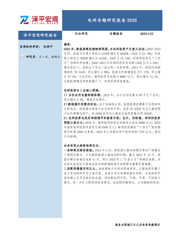 【北京读书逍遥游信息科技】【20250122】电网专题研究报告2025-33页 行业研究