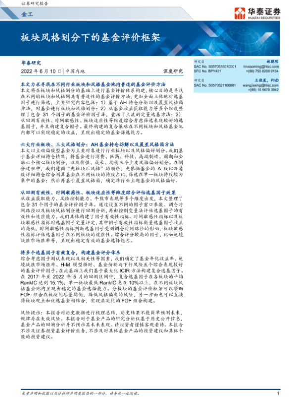 【华泰证券】【20220610】金工深度研究:板块风格划分下的基金评价框架-37页 行业研究