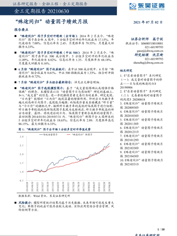 【东吴证券】【20210702】金工定期报告:“殊途同归”动量因子绩效月报-10页 行业研究