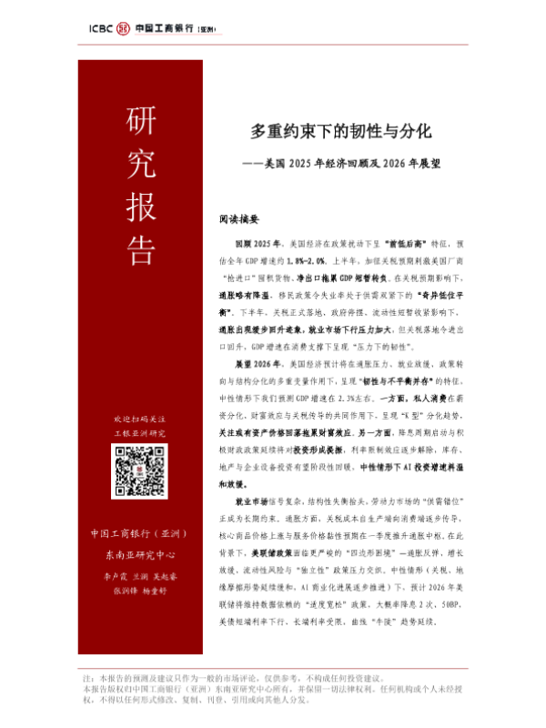 【中国工商银行(亚洲)东南亚研究中心】【2025】多重约束下的韧性与分化——美国 2025年经济回顾及 2026年展望-20页 宏观策略