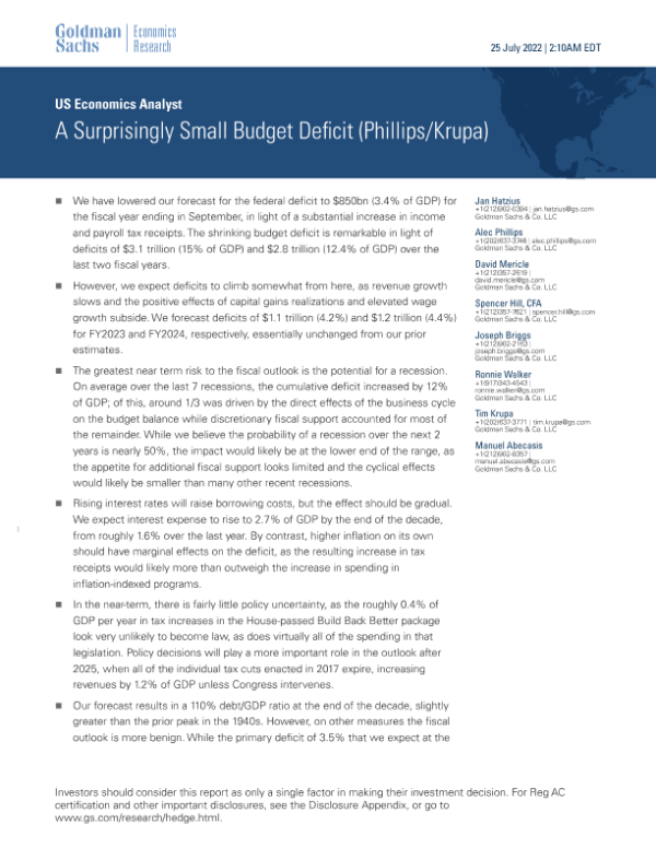 【Goldman Sachs】【20220725】S Economics Analyst_ A Surprisingly Small Budget Deficit-13页 行业研究