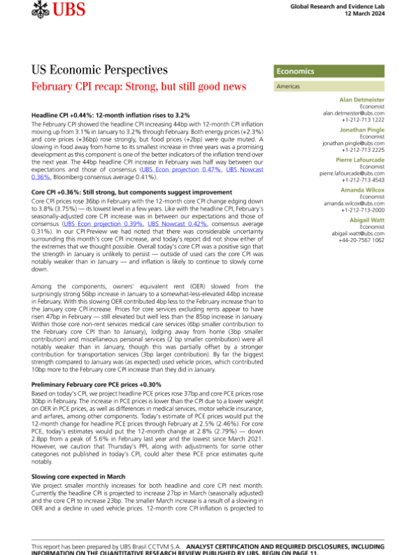 【UBS Brasil CCTVM S.A.】【20240312】US Economic Perspectives February CPI recap Strong, but still good news-14页 行业研究