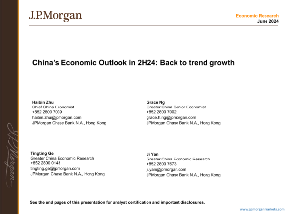 【摩根大通银行股份有限公司】【202406】2H24中国经济发展展望:回归趋势增长-40页 行业研究