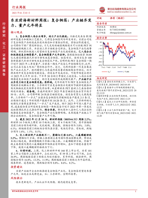 【东亚前海证券】【20230103】东亚前海证券-新材料周报:复合铜箔:产业链齐发力、量产元年将至-21页 行业研究
