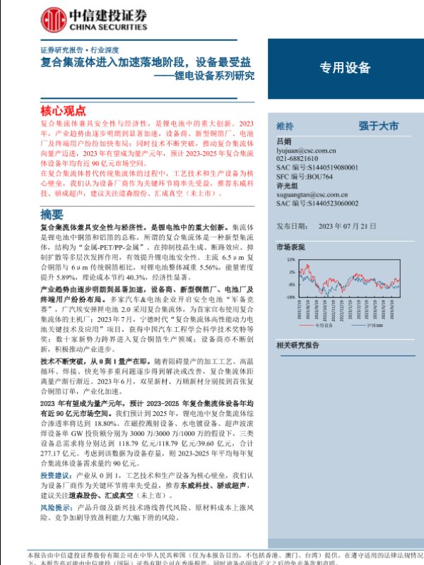 【中信建投证券】【20230721】专用设备行业锂电设备系列研究:复合集流体进入加速落地阶段,设备最受益-43页 证券期货研究报告