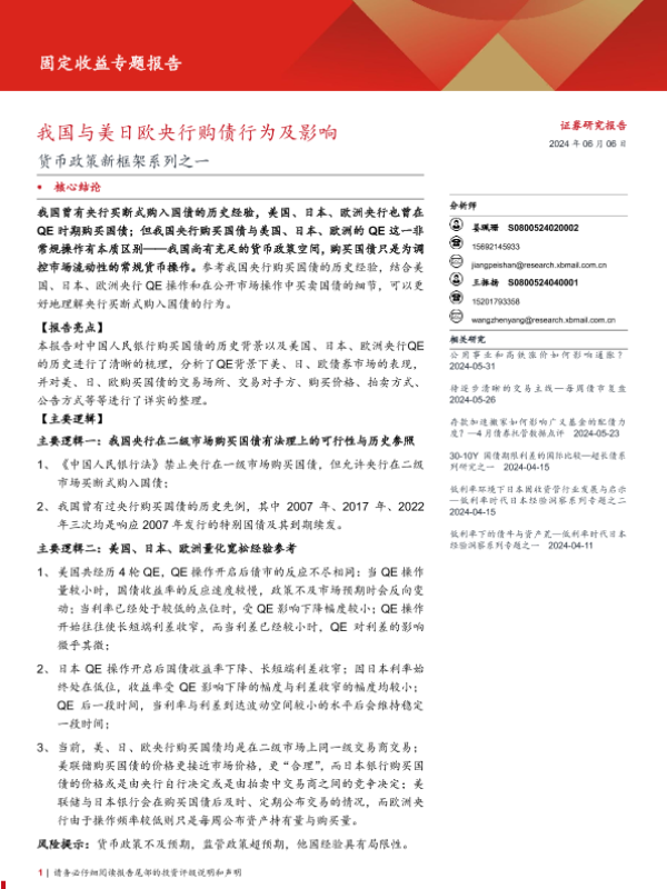 【西部证券】【20240606】货币政策新框架系列之一:我国与美日欧央行购债行为及影响-13页 行业研究