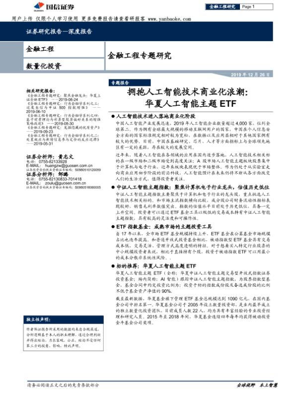 【国信证券】【20191226】金融工程专题研究:拥抱人工智能技术商业化浪潮-16页 证券期货研究报告