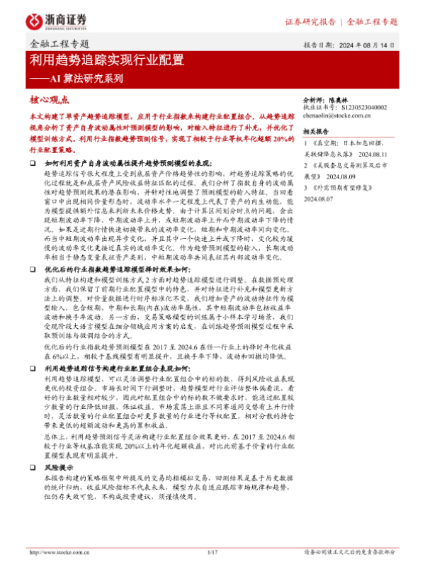 【浙商证券】【20240814】金融工程专题:AI算法研究系列-利用趋势追踪实现行业配置-17页 行业研究