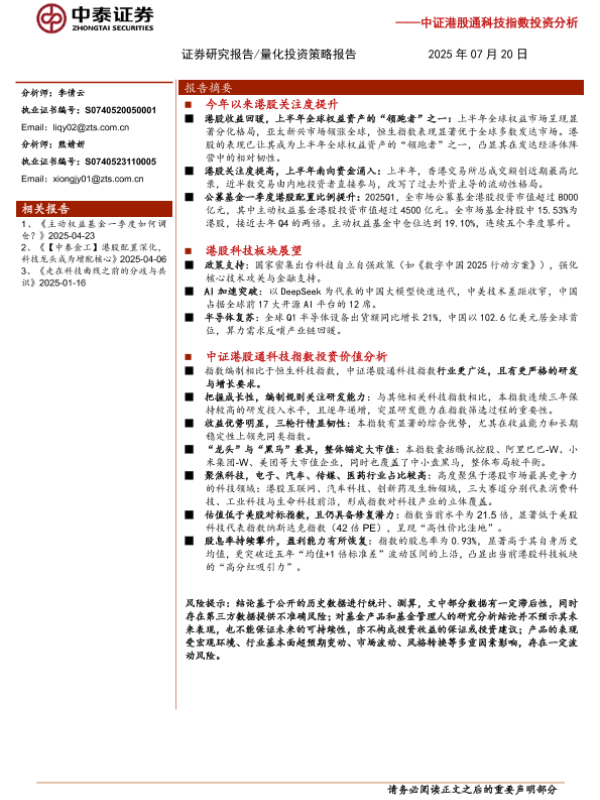 【中泰证券】【20250720】中证港股通科技指数投资分析:聚焦港股科技,擎动未来新势-17页 证券期货研究报告
