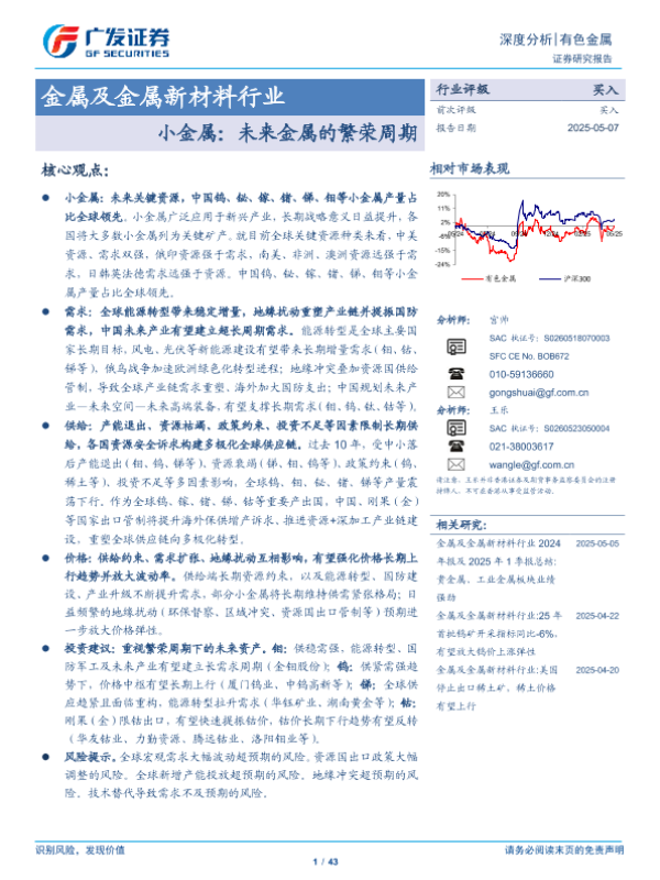 【广发证券】【20250507】金属及金属新材料行业:小金属,未来金属的繁荣周期-43页 证券期货研究报告