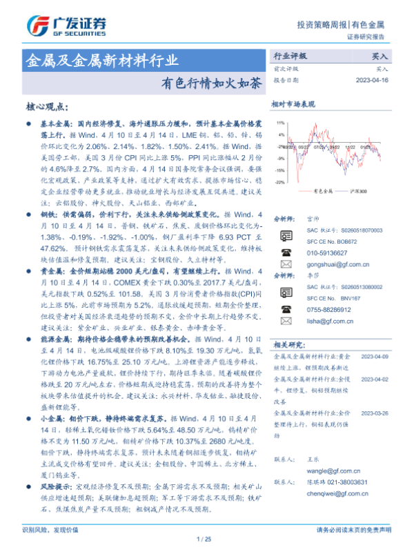 【广发证券】【20230416】20230416-广发证券-金属及金属新材料行业投资策略周报:有色行情如火如荼-25页 行业研究