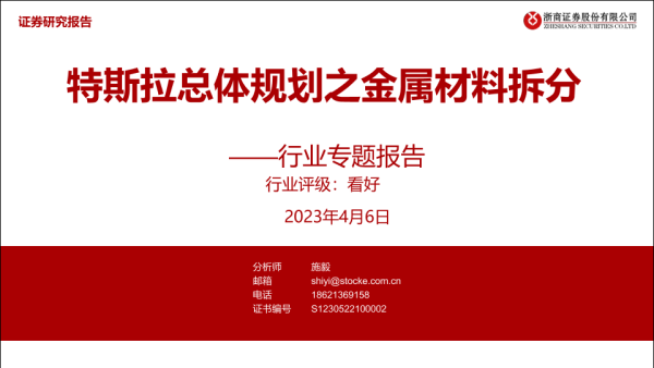 【浙商证券】【20230406】汽车行业专题报告:特斯拉总体规划之金属材料拆分-30页 行业研究
