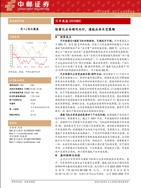 【中邮证券】【20230712】万丰奥威(002085)轻量化业务顺风而行,通航业务长空展翅-25页 行业研究