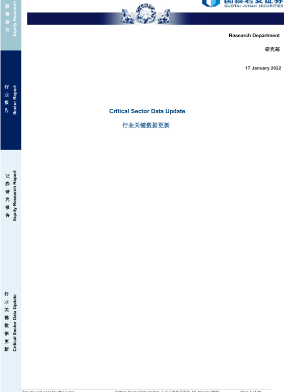 【国泰君安证券】【20220117】行业关键数据更新-26页 行业研究