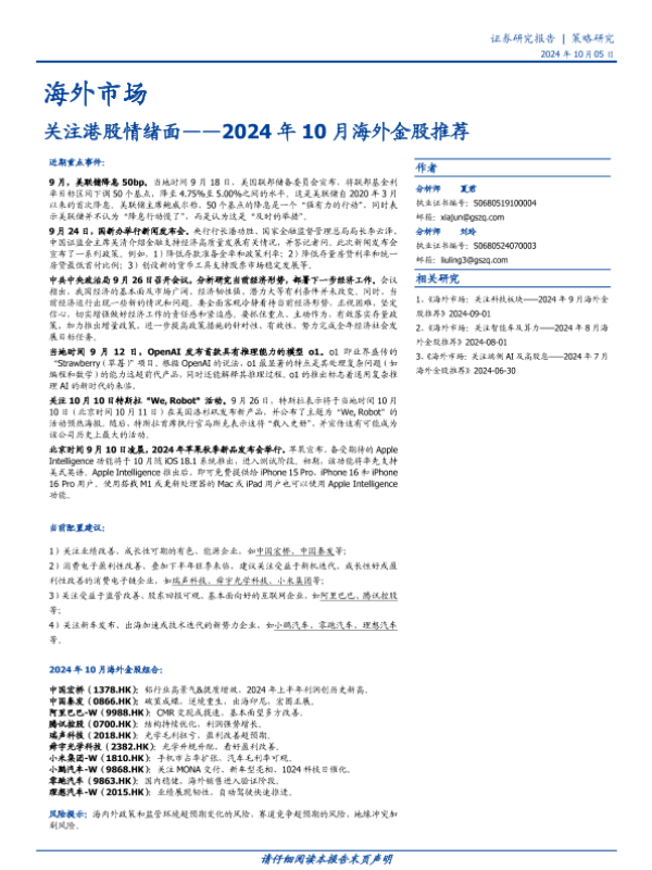 【国盛证券】【20241005】2024年10月海外金股推荐:关注港股情绪面-18页 行业研究