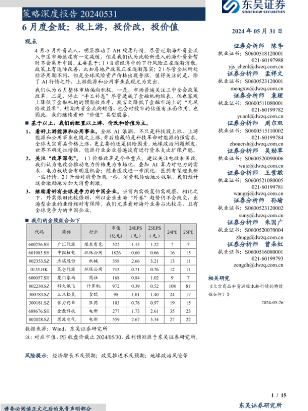 【东吴证券】【20240531】策略深度报告:6月度金股,投上游,投价改,投价值-15页 行业研究