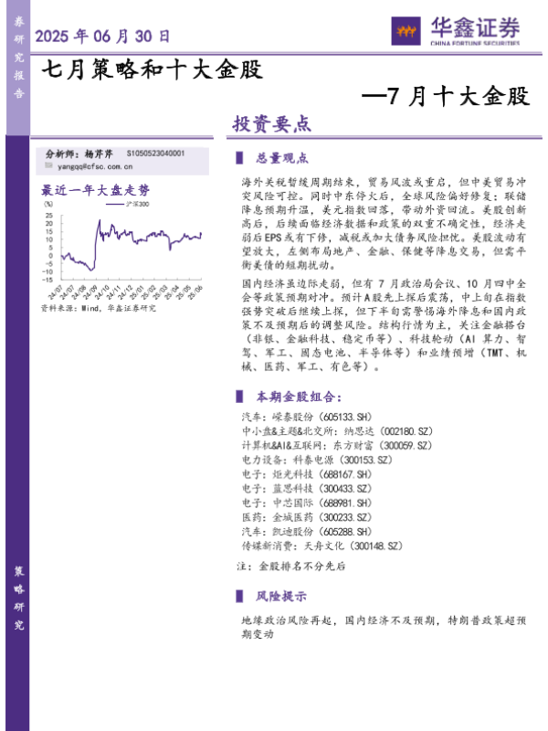 【华鑫证券】【20250630】7月十大金股:七月策略和十大金股-18页 证券期货研究报告