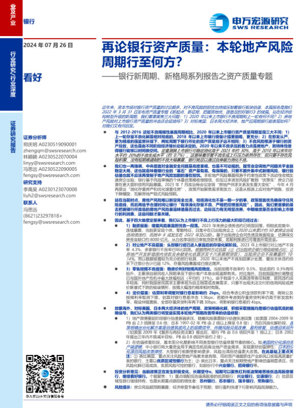 【申万宏源】【20240726】银行业新周期、新格局系列报告之资产质量专题-再论银行资产质量:本轮地产风险周期行至何方?-41页 行业研究