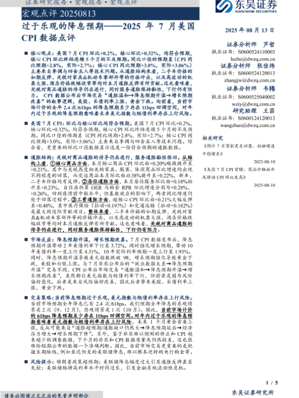 【东吴证券】【20250813】2025年7月美国CPI数据点评_过于乐观的降息预期-5页 证券期货研究报告