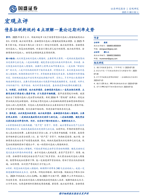 【国盛证券】【20250802】债券征税新规的4点理解—兼论近期利率走势-4页 宏观策略
