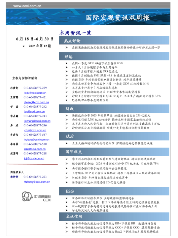 【中诚信国际】【20250731】国际宏观资讯双周报2025年第12期-17页 宏观策略