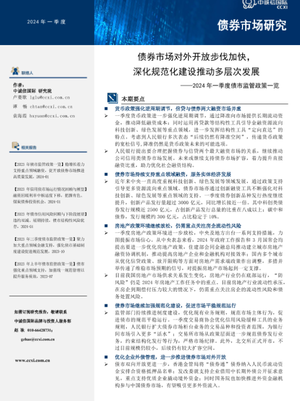 【中诚信国际】【20240101】2024年一季度债市监管政策一览:债券市场对外开放步伐加快,深化规范化建设推动多层次发展-10页 行业研究