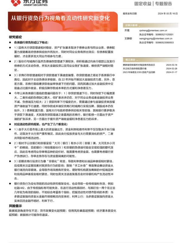 【东方证券】【20240516】固定收益专题报告:从银行资负行为视角看流动性研究新变化-24页 行业研究