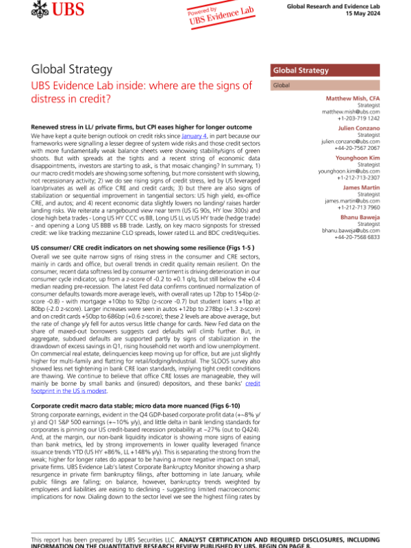 【UBS Securities LLC】【20240515】UBS Evidence Lab inside where are the signs of distress in credit?-11页 行业研究