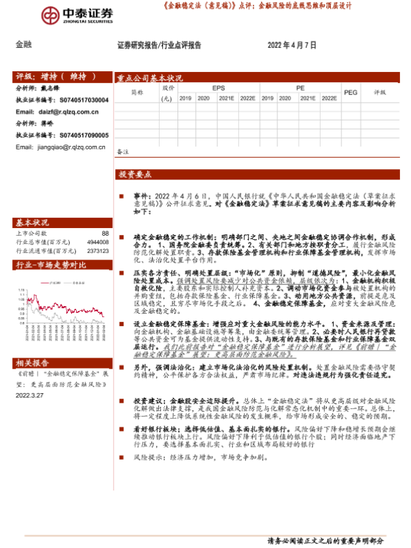 【中泰证券】【20220407】《金融稳定法(意见稿)》点评:金融风险的底线思维和顶层设计-9页 行业研究