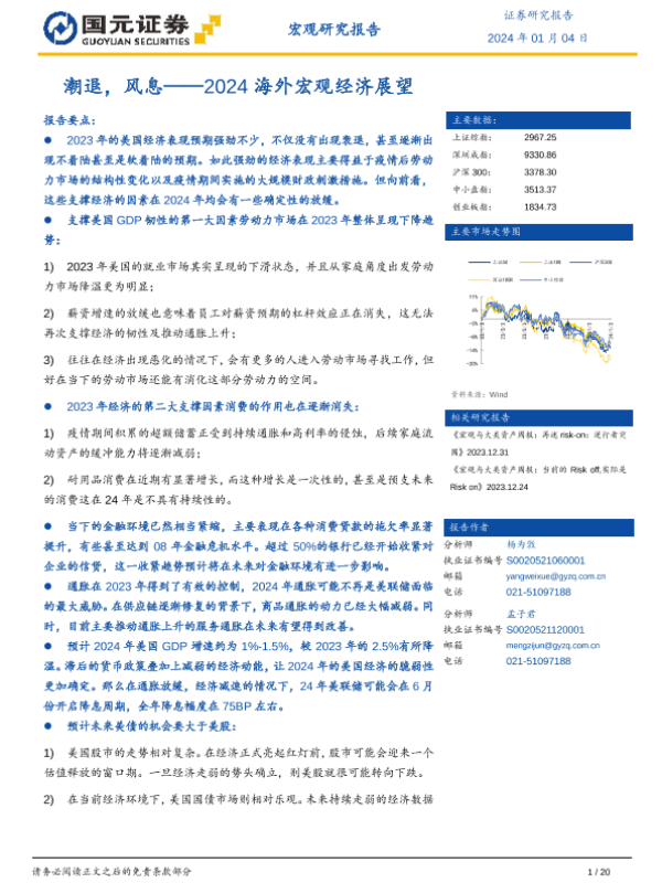 【国元证券】【20240104】2024海外宏观经济展望:潮退,风息-20页 行业研究