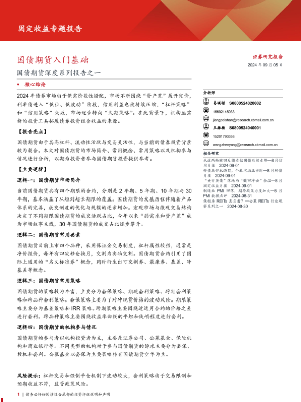 【西部证券】【20240905】国债期货深度系列报告之一:国债期货入门基础-15页 行业研究