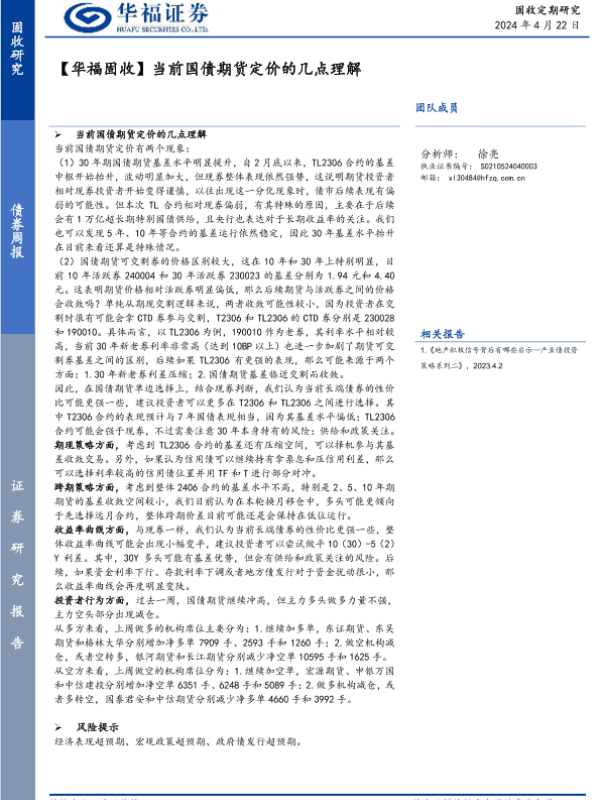 【华福证券】【20240422】当前国债期货定价的几点理解-17页 行业研究