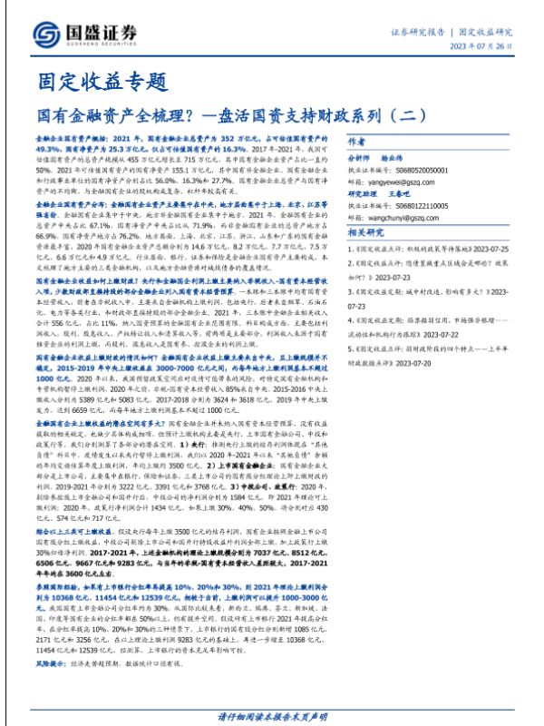 【国盛证券】【20230726】盘活国资支持财政系列(二):国有金融资产全梳理-28页 行业研究