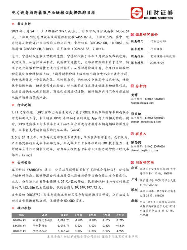 【川财证券】【20210524】电力设备与新能源产业链核心数据跟踪日报-4页 证券期货研究报告